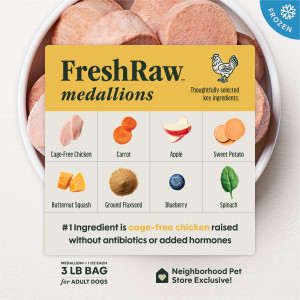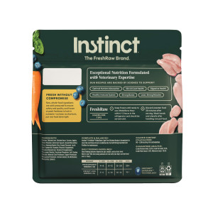 Instinct FreshRaw Medallions Cage-Free Chicken Recipe is formulated to meet the nutritional levels established by the AAFCO Dog Food Nutrient Profiles for maintenance.