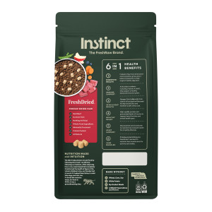 Instinct RawBoost High-Protein Recipe with Real Beef is formulated to meet the nutritional levels established by the AAFCO Dog Food Nutrient Profiles for all life stages except for growth of large size dogs (70 lbs or more as an adult).