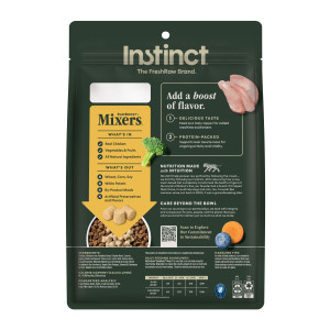 Instinct Raw Boost Mixers Cage Free Chicken Recipe is intended for intermittent or supplemental feeding only. This is a complementary food and should be fed along with a complete and balanced diet.