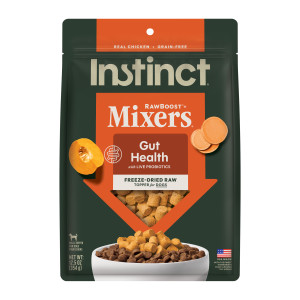 Instinct Raw Boost Mixers Gut Health Recipe is intended for intermittent or supplemental feeding only. This is a complementary food and should be fed along with a complete and balanced diet.