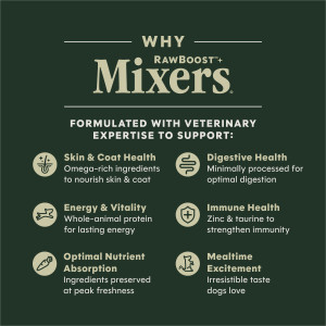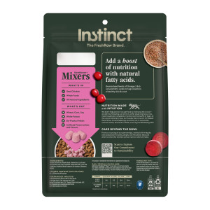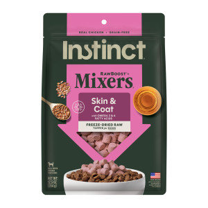 Instinct Raw Boost Mixers Skin & Coat Health Recipe is intended for intermittent or supplemental feeding only. This is a complementary food and should be fed along with a complete and balanced diet.