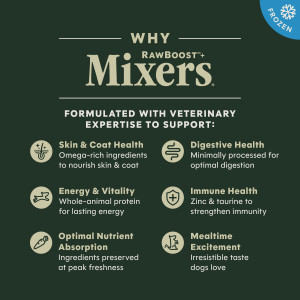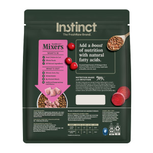 Instinct Raw Boost Frozen Mixers Skin & Coat Health Recipe is intended for intermittent or supplemental feeding only. This is a complementary food and should be fed along with a complete and balanced diet.