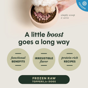 Add Instinct RawBoost Frozen Mixers to your dog’s current food using the information below. Remember to reduce the calorie amount of your current food accordingly to avoid overfeeding.