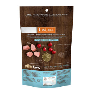 Instinct Raw Boost Mixers Tranquility is intended for intermittent or supplemental feeding only. This is a complementary food and should be fed along with a complete and balanced diet.