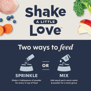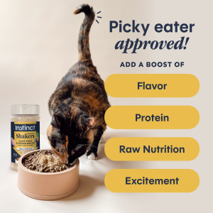 Add Instinct Raw Boost Shakers to your cat’s current food using the information below. Remember to reduce the calorie amount of your current food accordingly to avoid overfeeding. Sprinkle - Shake 1/2 tablespoon of powder for every 1/4 cup of your cat's food Mix - Add equal parts warm water and powder for a tasty gravy This product is intended for intermittent or supplemental feeding only. Use as part of your cat's healthy feeding plan. As with all food products, care should be taken in storing and handling. Wash your hands and bowls before and after serving. Keep package sealed to maintain freshness. Store in a cool, dry place.
