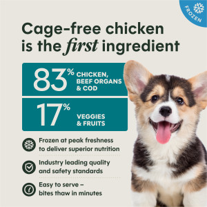 Instinct Raw Cage-Free Chicken Recipe for Puppies is formulated to meet the nutritional levels established by the AAFCO Dog Food Nutrient Profiles for growth except for growth of large size dogs (70 lbs or more as an adult).